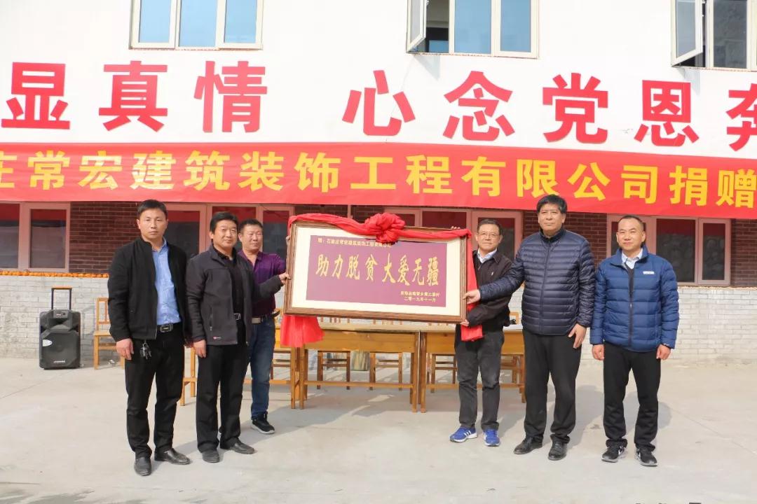 2019年11月9日,靈壽縣南營(yíng)鄉(xiāng)黃土梁村迎接了初冬的寒意,但清晨的山路,卻承載著常宏的溫暖。為積極響中央號(hào)召,深入貫徹"千企幫千村"精準(zhǔn)扶貧活動(dòng),石家莊市新華區(qū)發(fā)展改革局?jǐn)y手常宏建筑裝飾工程有限公司為河北省扶貧開(kāi)發(fā)工作重點(diǎn)村——黃土梁村獻(xiàn)上一份愛(ài)心,向黃土梁村捐贈(zèng)9萬(wàn)元,用于新民居文化廣場(chǎng)建設(shè)。新華區(qū)發(fā)改局局長(zhǎng)焦志信、南營(yíng)鄉(xiāng)黨委書(shū)記胡延衛(wèi)、發(fā)改局副局長(zhǎng)李霞,常宏董事總經(jīng)理王躍以及新華區(qū)發(fā)改局駐村工作組、南營(yíng)鄉(xiāng)黃土梁村雙委干部等出席捐贈(zèng)儀式。