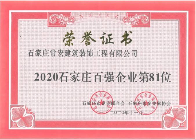 常宏入選 “2020石家莊百強(qiáng)企業(yè)”