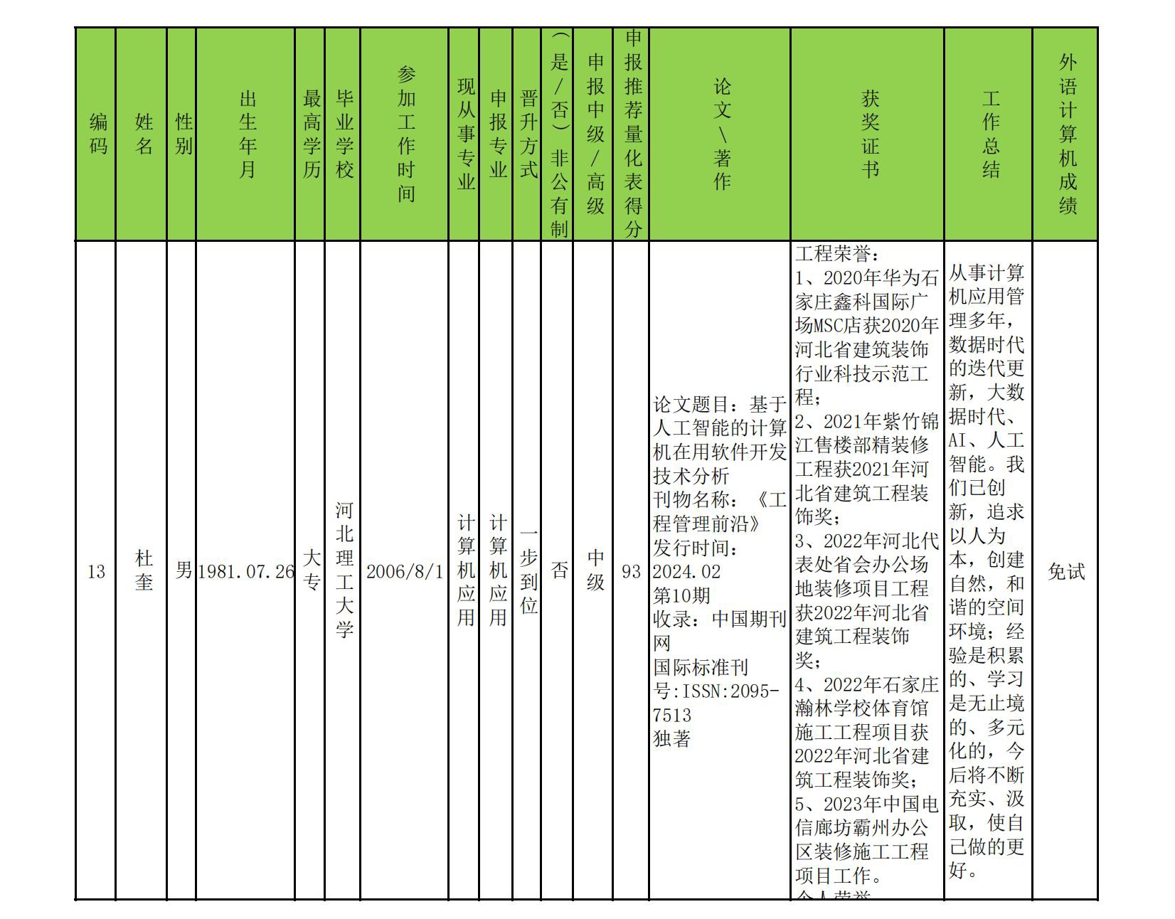 2024年中、高級(jí)職稱評(píng)審、推薦人選公示
