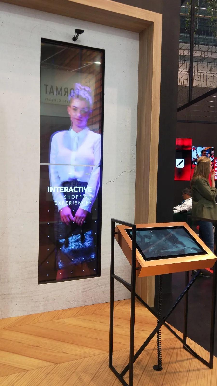 下面是荷蘭的一家公司整合的零售店智能產(chǎn)品,雖然在技術(shù)層面上不比國內(nèi)先進多少,但是內(nèi)容設(shè)計上還是我們值得借鑒的。前面的一個屏幕供顧客選擇衣服并提供各種搭配,大屏幕上同時出現(xiàn)你做出的選擇和模特穿著你所選衣服的靚麗外表。當您還在欣賞自己選擇的衣服是否合適時,會出現(xiàn)一個跟模特一樣的真人。也許這就是西方特有的幽默吧。