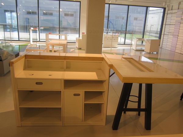 綜合配套的生產能力:商業(yè)店鋪道具涉及木工制造、金屬加工、廣告標識、電氣安裝等多門類制造工藝。為滿足這種綜合需要,常宏裝飾產業(yè)園建立了木制品制造中心、金屬制品制造中心和有機制品制造中心,將商業(yè)道具所需的零部件分類生產,集中裝配。各制造中心都有多條自動、半自動生產線,根據客戶訂單量大小可靈活安排生產:批量道具可分工序流水作業(yè);零星散量道具則可集中到一條線或車間完成作業(yè),年生產商業(yè)道具1500多種,30多萬件,可滿足客戶快速、多樣、個性的要求。